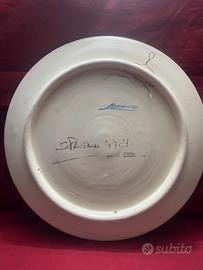 Piatto Ceramica D'arte Decorato A Mano - Firmato Spagna 1981 - Grande 39cm.