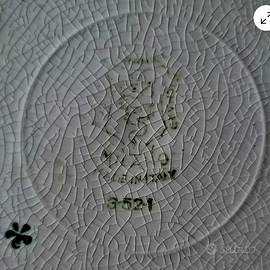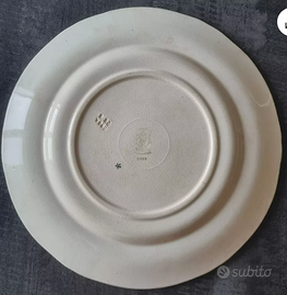 In vendita un splendido piatto antico in ceramica bianca e blu della Società Ceramica Richard Milano, una delle più prestigiose fabbriche di porcellana italiane. Il piatto ha un diametro di 25 cm e presenta un decoro con motivi floreali sul bordo. Al centro una scena portuale con un mercantile e una città sullo sfondo. Il piatto è firmato sul retro con il marchio del produttore che consiste in uno stemma con il serpente visconteo e le parole Società Ceramica Richard Milano (nella foto il contrasto è stato aumentato per aumentare la leggibilità).