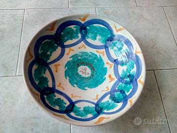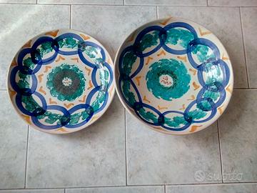 Nr. 3 piatti diametro 38. Nr. 2 piatti diametro diametro 37 e Nr. 1 ciotola diametro 38 cm altezza 12 cm circa con i colori classici delle ceramiche La Musa Blu cobalto, verde, giallo Caratteristici di altissima qualita' 20 euro/cad