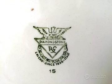 Sul retro marchio della manifattura R G (Richard Ginori) in verde con aquila a ali spiegate, con sotto la scritta Diamondstone , Laveno since 1856 Italy e il numero 15 (come da foto).