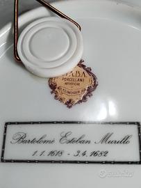 Splendido piatto ornamentale in pregiata porcellana con bordo rifinito in oro zecchino. Il piatto riproduce l'opera "Bambini che mangiano uva e melone" del celebre pittore spagnolo Bartolomé Esteban Murillo. Materiale: Porcellana di alta qualità (Marchio M.A.B.A. Limoges).
