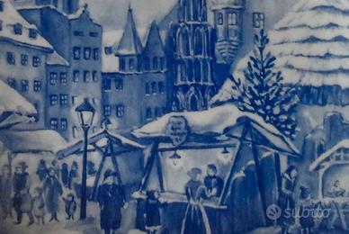 Raffinato piatto da esposizione marcato sul retro Richard Ginori di 22 cm di diametro, realizzato in fine porcellana e completamente decorato a mano nei toni del blu. Il disegno, molto particolareggiato, é un piccolo capolavoro in miniatura raffigurante un mercatino di Natale in città. Ottima idea per un regalo, per appendere in salotto o esporre sulla credenza. Ovunque farà la sua figura al pari di un quadro. Disponibile per la spedizione oppure ritiro a domicilio.