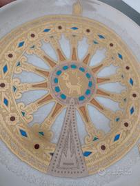 Piatto della collezione Morbelli,in porcellana, inciso ad acquaforte e lavorato a mano con decoro in oro zecchino e platino, con scatola originale.