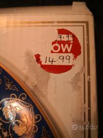 La confezione in cartone è presente, in discrete condizioni in quanto presenta una "sbucciatura" dovuta a un tentativo di rimozione del prezzo (vedasi foto contenente il bollino).