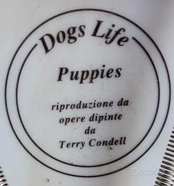 Piatto da parete Diam. 25 cm " Famiglia Boxer " Dogs Life Puppies - Riproduzione da opere dipinte da Terry Candel . ( 1123 )