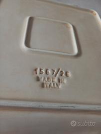 Splendido piatto da portata (o centrotavola) in ceramica italiana di alta qualità, caratterizzato da un design moderno con bordi ondulati. Il piatto è decorato a mano con un raffinato motivo di rami di ulivo, olive verdi e nere, che richiama la tradizione mediterranea. Il pezzo presenta una firma calligrafica sul fronte e il marchio d'origine inciso sul retro ("Made in Italy" con numero di serie 1567/26), a garanzia dell'artigianalità del prodotto. Ideale sia per l'uso quotidiano che come elemento decorativo per una cucina in stile rustico o chic. Dimensioni: Circa 25x 25 cm (forma quadrata con bordi mossi). Ottime condizioni, massima cura nell'imballaggio. #CeramicaItaliana #MadeInItaly #PiattoPortata #HomeDecor #ArtigianatoItaliano #TavolaInFesta #StileMediterraneo #CeramicaArtistica #OliveDesign #ArredoCucina #VintageHome #CentroTavola