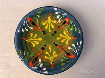 Bellissimo piccolo piatto decorativo spagnolo con fori predisposto per essere appeso.