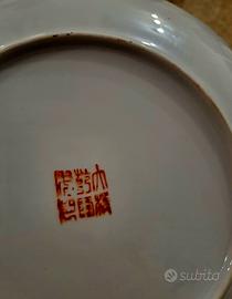 piatto decorativo in porcellana cinese, spesso identificato come stile Canton o "Rose Medallion".