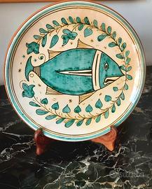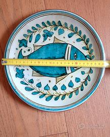 Piatto in ceramica , dello Studio Ottaviani , decorato a mano , nello stile tipico della ceramica di Vietri. Caratterizzato da colori vivaci e motivi ispirati al Mediterraneo. Piatto decorativo o da collezione.