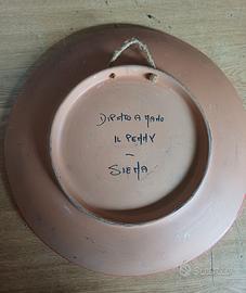 OFFRO PIATTO IN TERRACOTTA DIPINTO A MANO CHE SIMBOLEGGIA L'ARMA DEI CARABINIERI E IL PALIO DI SIENA