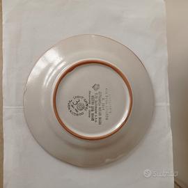 piatto da collezione della serie "Ristorante del Buon Ricordo".Prodotto dalle Ceramiche Solimene di Vietri sul Mare.l'iniziativa del Piatto del buon ricordo è stata un'invenzione di Dino Villani, noto anche per aver ideato il concorso di Miss Italia, la colomba pasquale e la festa di San Valentino. L'iniziativa, era nata nel 1964, aveva l'obiettivo di valorizzare e preservare le specialità della cucina regionale italiana, che rischiavano di scomparire sotto la spinta dell'omologazione culinaria.Ogni ristorante aderente all'Unione Ristoranti del Buon Ricordo proponeva una specialità locale effigiata su un piatto in ceramica, dipinto a mano dagli artigiani di Vietri sul Mare.Questo piatto viene donato al cliente che ordina il "Menu del Buon Ricordo" come souvenir dell'esperienza gastronomica.