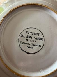 Ristorante “Gambrinus” – San Polo di Piave (Treviso) Piatto: “Anèra Muta a l’Uva Rabosa” 1977 Ottime condizioni. Originale ceramiche Solimene Vietri.