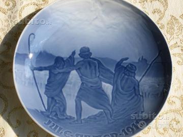 Questo bellissimo piatto dipinto a mano sotto smalto, della nota ditta danese Bing & Grondahl (consociata alla Royal Copenhagen dal 1987) e' uno di quelli che preferisco, parlando da collezionista.