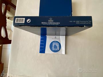 Natale nelle abitazioni di tutto il mondo. Il piatto di Natale dell'anno è la novantatreesima edizione nella serie, e porta il titolo "Si decora l'albero di Nata-le". Il motivo è creato dall'artista Sven Vestergaard, che ha colto l'ispirazione dalla consuetudine di ornare l'albero di Natale. Un uso che originariamente proviene dalla Germania del Sud, dove già nel 1600 in occasione del Natale si ornava con mele ed altri commestibili. Nel motivo si vedono bimbi che stanno ornando l'albero di Natale della famiglia. Sulla cima dell'albero si vede la stella di Betlemme, che diventò una caratteristica decorazione di Natale nel corso del nostro secolo. Il motivo è eseguito in rilievo ed il piatto è decorato a mano in colore blu sottosmalto. Sul retro il piatto porta le iniziali dell'artigiano decora-