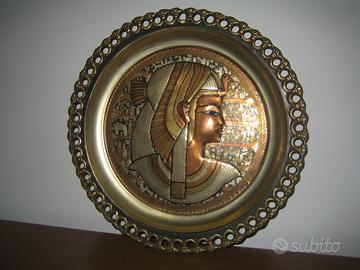 Piatto in rame sbalzato Egiziano lavorato e dettagliato con bordo decorato da parete con gancio.