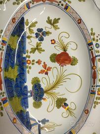 Elegante piatto ovale Faenza CALF, un pezzo vintage di grandi dimensioni con una decorazione vivace e dettagliata. Misure: 43 x 36 cm altezza 6 cm. - Design floreale - Finitura lucida.