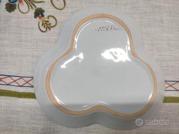 Piatto decorato a mano Faenza CALF con tre scomparti, ideale per servire. Dimensioni: 21 x 19 cm altezza 2 cm Nuovo mai usato perfetto senza rotture ne filature. - Design vintage. - Decorazioni Garofano blu. - Bordo decorato con colori vivaci.