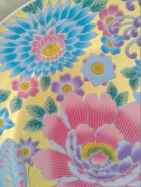 Piatto decorativo giapponese in ceramica, fantasia floreale nei coni pastello. Diametro 26 cm.