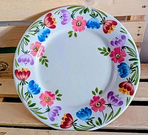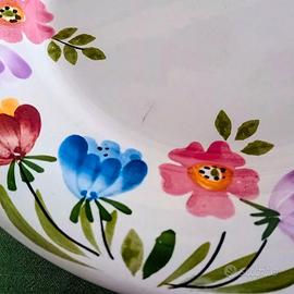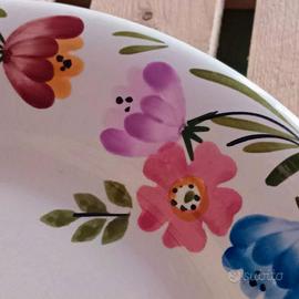Piatto da portata / torta Richard Ginori, manifattura di Mondovì inizio anni '60. Design : Giò Pont Serie :Paola. Collezione : Primavera Motivi floreali colorati dipinti a mano sul biscotto di terracotta prima dell'applicazione dello smalto. Poche tracce di utilizzo, colori vivaci, smalto lucido. Nessuna scheggiatura rottura fessurazione. Vedi foto. cm 29,5 x cm 2,5