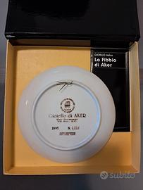 Bellissimo piatto gioiello, ornamentale da collezioneMorbelli Oreficeria su porcellana inciso all'acquaforte decorato con smalto rosso, verde e Oro 24 Kt - "Gioiello di Aker" "Pre-Normanno" VII sec. d.c. 1995 . Serie limitata numero N° 2846. (Piatto ornamentale non per cibo).