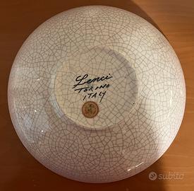 Ci sono due punti sul bordo in cui e’ via lo smalto, ma sono molto piccoli e non visibili una volta posato o appeso il piatto.