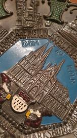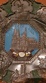 piatto souvenir in metallo smaltato come da foto cattedrale di colonia germania 21 cm diametro per arredo, riuso, collezionismo