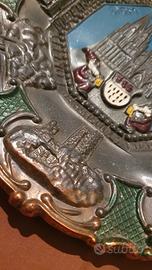 piatto in metallo, souvenir vintage, colonia