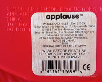 Piatto in plastica Elmo Sesame Street Muppet Show Vintage 1998 Jim Henson Piatto in plastica col volto di Elmo di Sesame Street che può esser utilizzato come simpatico svuota-tasche. L'adesivo riporta la frase: I'm a great plate! Sul retro è impresso © 1998 Henson, Applause. Il piatto, come nuovo, non è mai stato usato, comperato esclusivamente come oggetto da collezione. Misure: 24 x 23 cm Le fotografie pubblicate, scattate personalmente, sono parte integrante della descrizione.