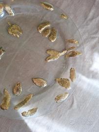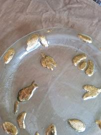 Piatto in vetro con decorazione foglie oro NUOVO