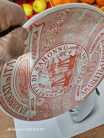 Il piatto riprende l'iconica grafica degli Amaretti di Saronno, con il celebre battello a vapore e i decori classici in arancione.