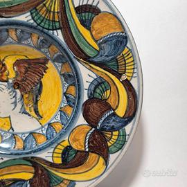 Piatto in maiolica area umbro marchigiana raffigurante testa di Hermes in stile rinascimentale, risalente alla fine dell'800.
