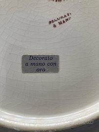 Decorato interamente a mano con oro, ottime condizioni, nessuna rottura o mancanza di pezzi, solo un piccolo punto su un lato dove il colore è smarrito dovuto al tempo, ancora con tutti i suoi bollini originali come da foto.