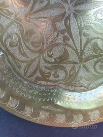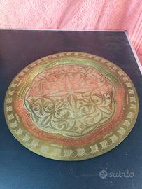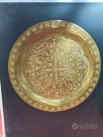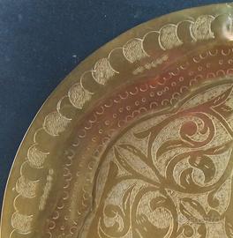Piatto orientale ottone decorato a mano anni 80