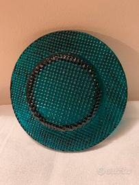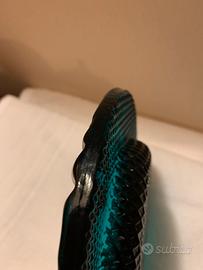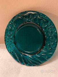 Piatto ornamentale in vetro pressato verde intenso con motivi floreali sul bordo un pezzo vintage anni 60 Perfetto anche come svuota tasche