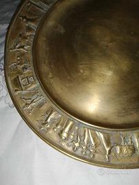 Piatto in ottone diametro 26 gioielleria caldironi per motta il bordo presenta a rilievo rappresentazioni di vita medievale e lavorazione del panettone (SC65)