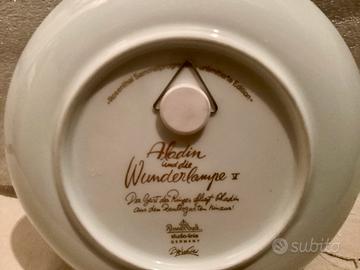 Ogni piatto è finemente decorato con illustrazioni colorate e fantasiose che danno vita a scene della fiaba di "Aladin".