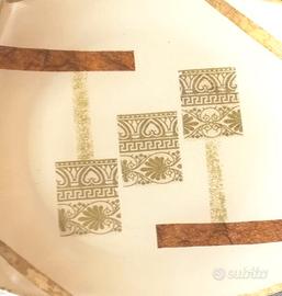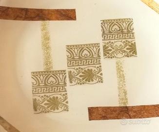 Funzione di centro tavola, svuota tasche. In vetro finemente lavorato e decorato a mano, marmorizzato e con finiture a decoupage in oro.