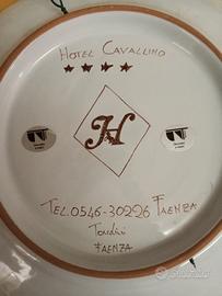 Piatto serie Garofano Faenza, pubblicità Hotel Cavallino. Perfetto. Decorativo, fedele. Diam. cm. 26