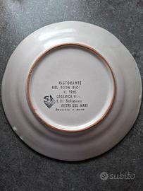 Piatto ristorante del buon ricordo, in ceramica decorato a mano, di Manuelina Recco