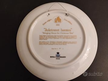 PIATTO ROYAL COPENHAGEN, CHRISTMAS IN DENMARK 1991, DECORATO A MANO COLORI BRILLANTI SOTTO SMALTO, RIFINITO IN ORO ZECCHINO. EDIZIONE LIMITATA - DIAMETRO 20.