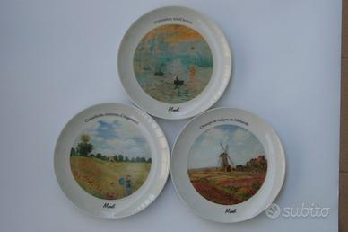 Nr.12 Piatti Ceramica Tognana anni 80, diametro 19 centimetri, raffiguranti quadri impressionisti Van Gogh, Degas, Renoir, Monet, Cesanne, Gaugiun .