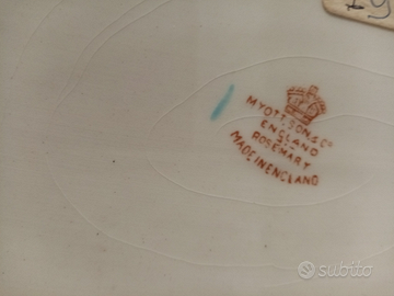 Meraviglioso piatto vegetale vintage anni 30 con raffinate decorazioni Raro Myott Sons &C. England Rosemary,Made in England Diametro 37x29