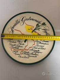 Piatto decorativo vintage con la mappa delle specialità gastronomiche della Puglia.