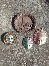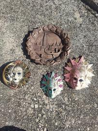 Ricordi di Venezia,il piatto è veramente artigianale comprato negli anni 80 prima dell'invasione del mercato cinese.In più in regalo tre maschere moderne.