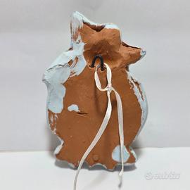 Piccola acquasantiera da collezione in terracotta con angelo, dipinta celeste e color oro. Nel retro scritta Cefalù