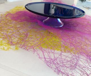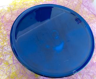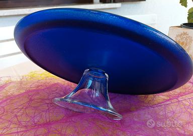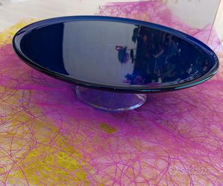 Vendesi piccola alzata in vetro blu cobalto con base in vetro trasparente, perfetta per dolci o centro tavola o frutta o portaoggetti, diametro piatto 31,5 cm e altezza 9 cm, perfette condizioni, no spedizione e consegna diretta in zona Lancenigo di Villorba