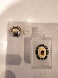 Buongiorno, vendo piccola bottiglia di profumo vintage, in vetro satinato, e tappo argentato, con inserto nel lato anteriore un cameo in ceramica con cornice, vuota, da collezione.