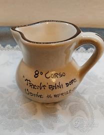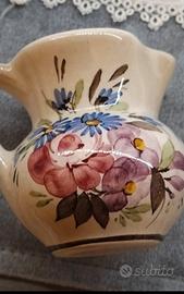 Piccola brocca in ceramica artigianale del noto marchio Pezzetta( Friuli) . Decoro floreale tipico friulano ma dai colori più delicati. Sul retro porta una scritta commemorativa. Misure dettagliate sull'ultima foto. Condizioni perfette.