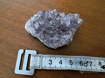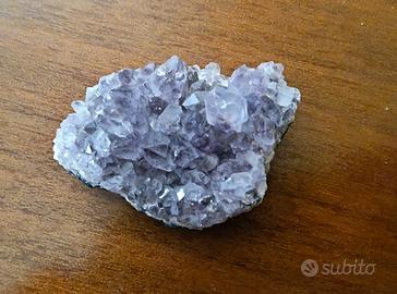 Vendo drusa di Ametista grezza naturale. Un pezzo di circa 5 cm con cristalli di un bel colore viola lavanda. Ideale per chi inizia una collezione di minerali, per la cristalloterapia (associata a calma ed equilibrio) o come elegante oggetto decorativo da scrivania. Essendo un prodotto naturale, ogni formazione cristallina è unica e presenta le sue caratteristiche inclusioni. Viene fornita con sacchetto vellutato e targhetta identificativa. Contattami per qualsiasi informazione. Spedizione con imballaggio protettivo.