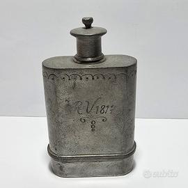 Vecchia fiaschetta in metallo incisa. Forse porta liquore. Presente scritta incisa RV 1817.